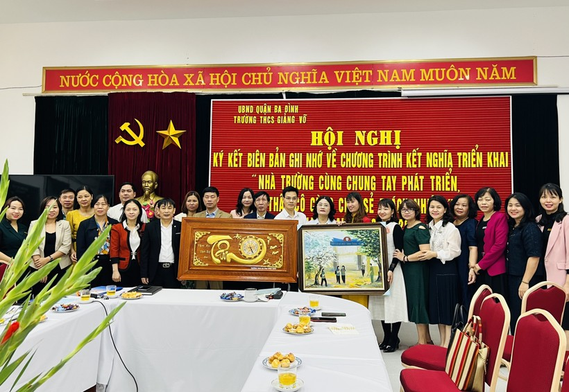 Chiều 13/4, đại diện Ban giám hiệu trường THCS Giảng Võ (quận Ba Đình) cho biết, nhà trường vừa tổ chức hội nghị ký kết chương trình kết nghĩa “Nhà trường cùng chung tay phát triển - thầy cô cùng chia sẻ trách nhiệm” giai đoạn 2023 - 2025 với trường THCS Ba Trại (huyện Ba Vì).