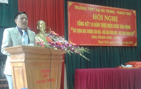Phát biểu chỉ đạo Hội nghị, đồng chí Trần Văn Thảnh - Phó Chủ tịch CĐGD Hà Nội đánh giá cao sự nỗ lực, cố gắng của đội ngũ giáo viên và học sinh nhà trường, sự phối hợp chặt chẽ giữa chính quyền, công đoàn trong việc thực hiện cuộc vận động, đồng thời biểu dương những thành tích tập thể và cá nhân đã đạt được trong 10 năm qua, đồng thời nhấn mạnh một số nội dung và phương hướng thực hiện cuộc vận động trong thời gian tới: xây dựng môi trường giáo dục lành mạnh, thân thiện, phấn đấu nâng cao chất lượng và hiệu quả giáo dục - đào tạo, quan tâm giáo dục toàn diện học sinh, thiết thực xây dựng văn hoá người Hà Nội thanh lịch, văn minh, góp phần đổi mới căn bản toàn diện GD&ĐT Thủ đô.