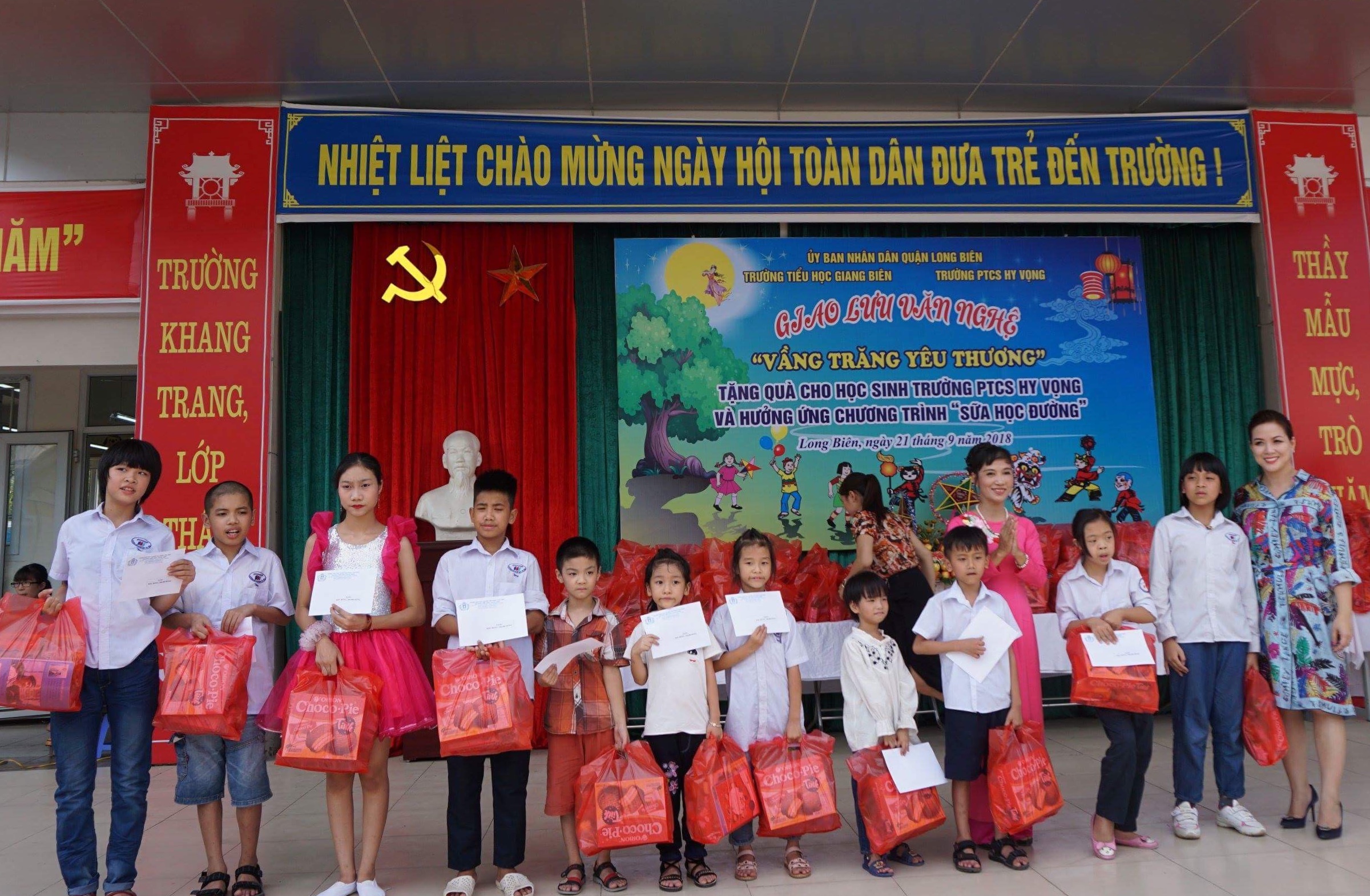 Với mong muốn góp thêm niềm vui nhân dịp năm học mới và mừng Tết Trung thu cho các em học sinh kém may mắn, thầy và trò trường TH Giang Biên cùng các đơn vị tài trợ đã dành tặng cho các em những món quà hết sức ý nghĩa và thiết thực. Chương trình đã trao 10 suất học bổng cho 10 học sinh vượt khó của trường PTCS Hy Vọng (500.000 đồng/suất); trao 80 suất quà cho 80 học sinh trường PTCS Hy Vọng (200.000 đồng/suất) nhằm động viên các em có thêm động lực phấn đấu, vượt khó vươn lên trong học tập, hòa nhập với cộng đồng. Ngoài ra, chương trình cũng trao 40 suất quà cho 40 học sinh trường TH Giang Biên có hoàn cảnh khó khăn.