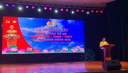 Tại buổi Lễ, đồng chí Nguyễn Tấn Trường - Chủ tịch Công đoàn lâm thời đã phát biểu, tóm tắt quá trình hình thành và phát triển trường Tiểu học, THCS và THPT Archimedes Đông Anh. Thạc sỹ Trần Thị Nguyệt Quế - Phó Hiệu trưởng nhà trường đã phát biểu cảm ơn sự quan tâm chỉ đạo của Công đoàn cấp trên, nhấn mạnh yêu cầu Công đoàn nhà trường thực hiện tốt chức năng đại diện, chăm lo, bảo vệ quyền và lợi ích hợp pháp, chính đáng của CBGV, NV.