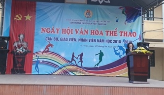 Phát biểu chỉ đạo, đồng chí Trần Thị Thu Hà - Chủ tịch Công đoàn ngành Giáo dục Hà Nội cho biết: trong năm học 2018 - 2019 cụm trường THPT Thạch Thất – Quốc Oai là cụm đầu tiên của Thành phố tổ chức Ngày hội Văn hóa - Thể thao với nhiều nội dung thi đấu thu hút đông đảo CBGV,NV tham gia như: thi kéo co (nam, nữ), bóng bàn; các môn giao hữu như bóng chuyền hơi và cầu lông. Ngày hội văn hóa thể thao cụm đã thu hút được đông đảo CBGV, NV tham gia tạo không khí thi đua, đoàn kết, phấn khởi và thực sự trở thành ngày Hội của các đơn vị trong Cụm.