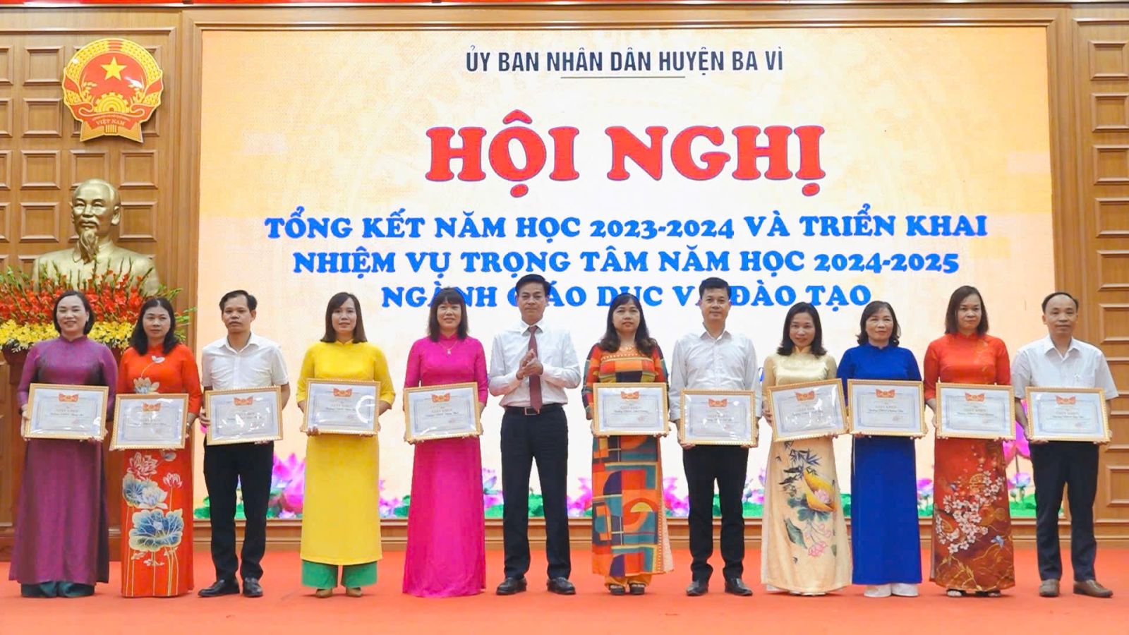 Nhân dịp này, UBND huyện Ba Vì đã khen thưởng 94 tập thể và cá nhân có thành tích xuất sắc trong thực hiện nhiệm vụ năm học, kết quả thực hiện phong trào Tiếng trống học bài, công tác tuyển sinh và lớp 10 và công tác y tế học đường năm học 2023- 2024.
