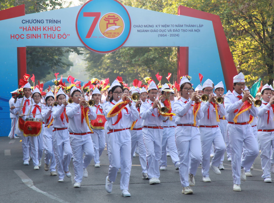 Màn diễu hành có ý nghĩa tái hiện lại chặng đường phát triển của ngành GD&ĐT Thủ đô, đồng thời tôn vinh những nỗ lực, cống hiến của các thế hệ nhà giáo, học sinh trong 70 năm qua. Học sinh diễu hành qua lễ đài với khí thế phấn khởi, tin tưởng và nỗ lực cố gắng để nâng cao thành tích và gặt hái được nhiều thành công hơn nữa trong năm học 2024 - 2025
