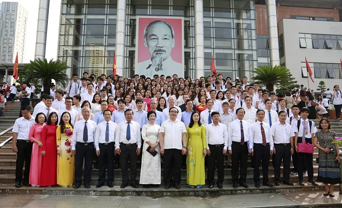 Bí thư Thành ủy Hoàng Trung Hải với thầy trò Trường THPT chuyên Hà Nội - Amsterdam