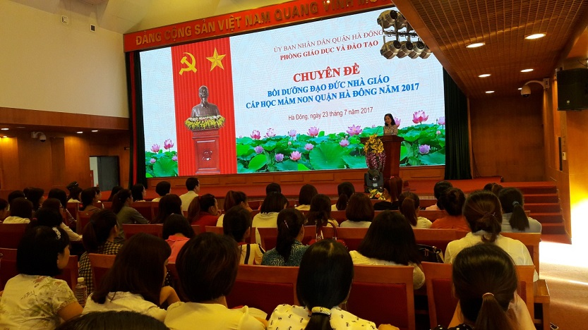 Lớp bồi dưỡng đạo đức nhà giáo vào ngày chủ nhật tại hội trường UBND quận Hà Đông
