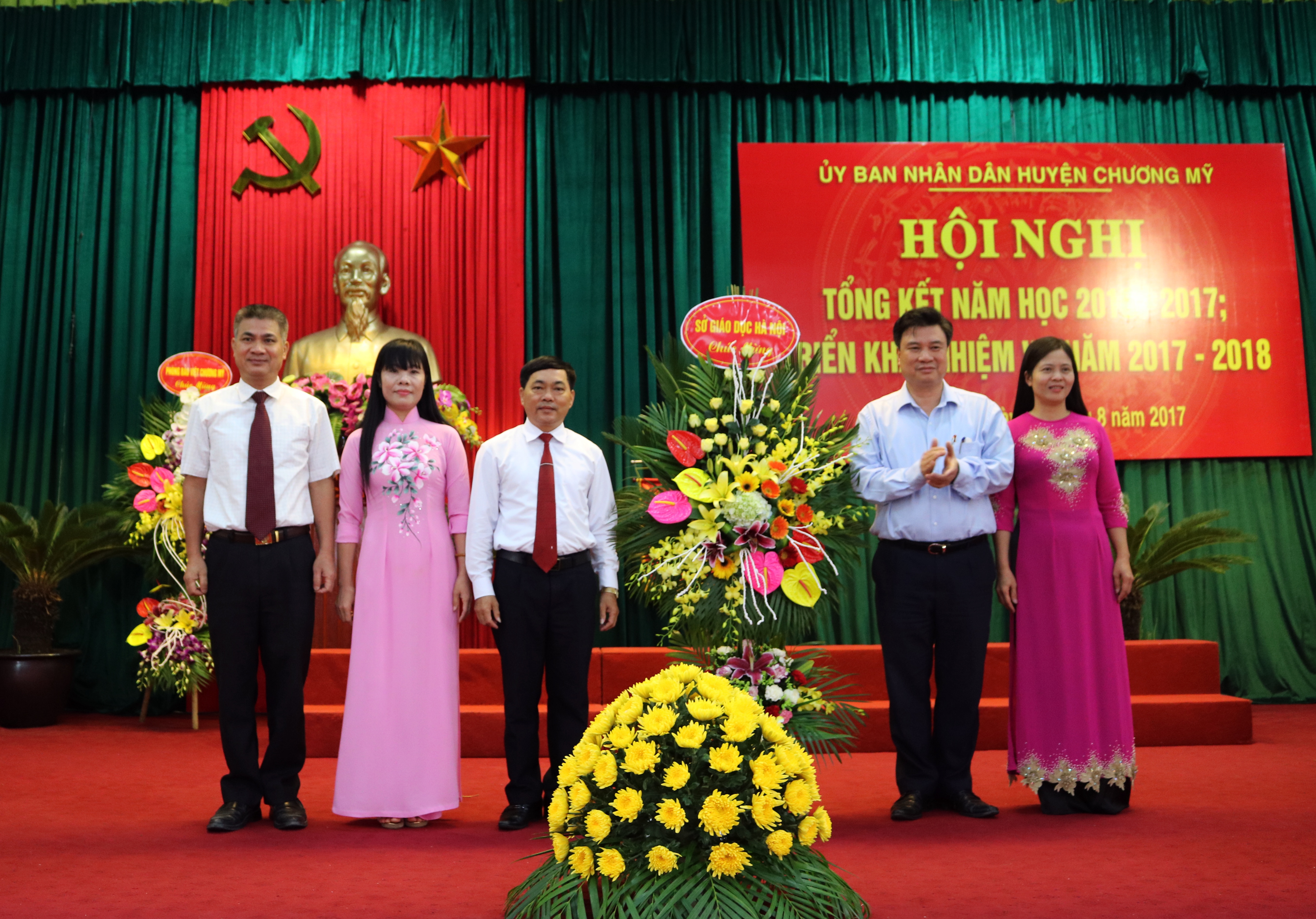 Dự hội nghị tổng kết năm học 2016 – 2017 và triển khai nhiệm vụ năm học mới 2017 – 2018 của huyện có Phó Giám đốc Sở GD&ĐT Hà Nội Chử Xuân Dũng; đại diện lãnh đạo huyện Thanh Trì cùng BGH các nhà trường và các thầy cô giáo được khen thưởng.