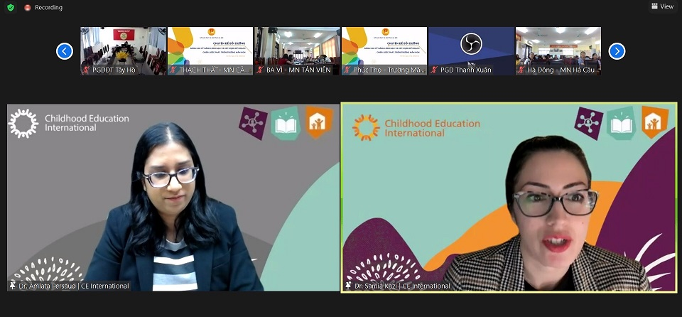 Nội dung tập huấn trọng tâm chia sẻ những thành tựu đổi mới của giáo dục mầm non thế giới, tầm quan trọng của lãnh đạo trong kiểm soát và duy trì chất lượng nhà trường; cung cấp các kỹ năng quản lý và lãnh đạo; Giới thiệu Chuẩn đánh giá ACEI quốc tế và hướng dẫn cách thức xây dựng chiến lược phát triển nhà trường. Các thành viên tham dự tập huấn tại điểm cầu đã tích cực tham gia, tương tác cùng với các giảng viên, cùng thảo luận cách thức ứng dụng những kinh nghiệm đổi mới của GDMN thế giới vào bối cảnh của Việt Nam, ứng dụng đổi mới đó tại các trường mầm non ở Hà nội.