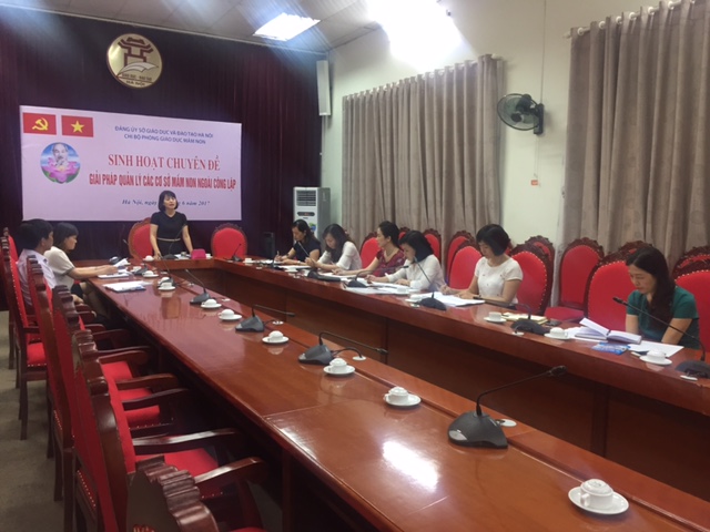 Thực hiện Hướng dẫn số 09-HD/BTCTU ngày 14 tháng 5 năm 2013 của Ban Tổ chức Thành ủy Hà Nội và thực hiện Hướng dẫn của Ban chấp hành Đảng ủy Sở GD&ĐT Hà Nội về việc tổ chức sinh hoạt chuyên đề năm 2017; Chi bộ phòng Giáo dục Mầm non tổ chức buổi sinh hoạt chuyên đề Quý II năm 2017 với nội dung: “Rủi ro nghề giáo viên mầm non, các giải pháp quản lý các cơ sở GDMN ngoài Công lập”.