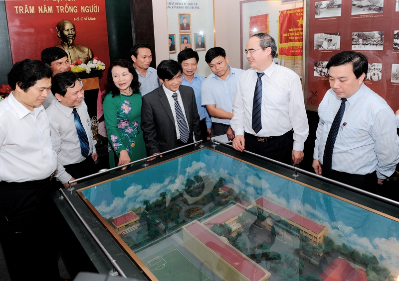 Sau khi thăm phòng truyền thống của nhà trường, thăm một lớp học sinh đang học và trò chuyện thân mật với cô giáo, học sinh, Chủ tịch TW Mặt trận tổ quốc Việt Nam Nguyễn Thiện Nhân đã động viên cô và trò cần tích cực đổi mới phương pháp, dạy học gắn với thực tiến để nâng cao chất lượng giờ học và mở mang kiến thức cho các em. Tiếp đó, đồng chí Chủ tịch đã có buổi làm việc và nói chuyện với toàn thể cán bộ, giáo viên, nhân viên và 35 học sinh tiêu biểu các khối lớp của nhà trường.