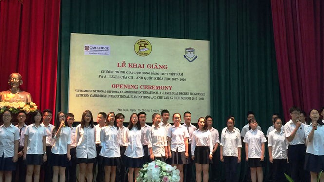 Lễ khai giảng lớp song bằng khóa học 2017-2020 đã diễn ra tại trường THPT Chu Văn An vào ngày 15/7/2017. Phát biểu tại buổi lễ, PGĐ Sở GD&ĐT Hà Nội Chử Xuân Dũng cho biết: Sau gần 1 năm, kể từ ngày triển khai nhiệm vụ năm học 2016-2017, dưới sự chỉ đạo của lãnh đạo UBND Thành phố Hà Nội về việc hội nhập quốc tế trong lĩnh vực giáo dục, đưa chương trình quốc tế vào dạy trong các trường THPT công lập của Thành phố, Sở GD&ĐT Hà Nội đã khẩn trương, chủ động phối hợp cùng các sở, ngành chức năng chỉ đạo trường THPT Chu Văn An xây dựng và bảo vệ thành công Đề án “Thí điểm đào tạo chương trình song bằng tú tài THPT Quốc gia Việt Nam và A-Level của CIE, Anh Quốc tại trường THPT Chu Văn An, Hà Nội”.
