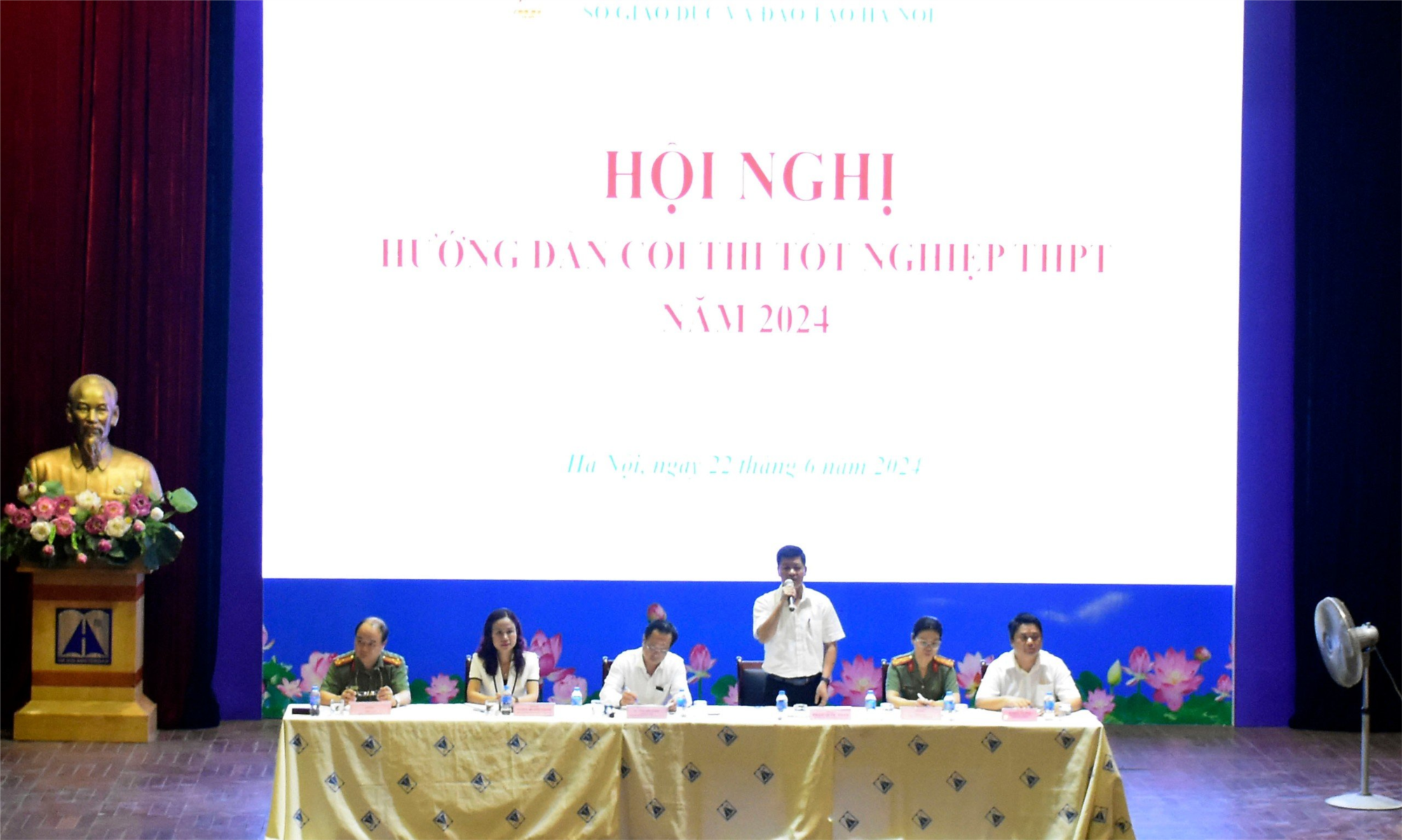 Ngày 22-6, Sở Giáo dục và Đào tạo Hà Nội tổ chức hội nghị hướng dẫn coi thi tốt nghiệp trung học phổ thông (THPT) năm 2024 với sự tham gia của 196 trưởng điểm thi, 196 phó trưởng điểm thi và các đơn vị liên quan.