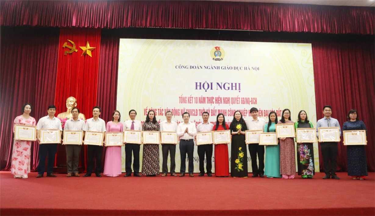 Nhân dịp này, Công đoàn ngành Giáo dục Hà Nội đã khen thưởng cho 53 tập thể và 74 cá nhân đạt thành tích trong 10 năm thực hiện phong trào thi đua “Giỏi việc trường - Đảm việc nhà” giai đoạn 2010 - 2020; 61 gia đình nhà giáo đạt danh hiệu Gia đình nhà giáo Thủ đô tiêu biểu ngành GDĐT Hà Nội năm học 2019 - 2020; 35 cá nhân đạt danh hiệu sáng kiến sáng tạo ngành GDĐT Thủ đô năm học 2019 - 2020.