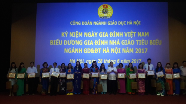 Trong những năm qua, đội ngũ nhà giáo Thủ đô đã không ngừng phấn đấu, rèn luyện để vừa giỏi việc trường vừa đảm việc nhà, đóng góp xây dựng nhà trường ổn định, phát triển, xây dựng gia đình ấm no, hạnh phúc. Nhiều nhà giáo đã khắc phục khó khăn hoàn thành tốt các nhiệm vụ được giao. Nhằm động viên, khích lệ các nhà giáo trong việc xây dựng gia đình hạnh phúc, năm 2017 Công đoàn ngành Giáo dục Hà Nội đã chỉ đạo CĐCS tiếp tục đẩy mạnh tuyên truyền biểu dương các gia đình nhà giáo tiêu biểu cấp trường và Công đoàn Ngành đã xét biểu dương 45 gia đình nhà giáo tiêu biểu ngành GD&ĐT Hà Nội và lựa chọn 3 gia đình nhà giáo có thành tích xuất sắc tiêu biểu đề nghị LĐLĐ Thành phố khen thưởng. Các đồng chí là những nhà giáo có năng lực, trình độ chuyên môn vững vàng, đạt thành tích trong công tác ở cơ quan, đơn vị, trường học đồng thời cũng đóng vai trò tích cực trong công tác xây dựng gia đình hạnh phúc, dạy các con ngoan ngoãn, học giỏi và thành đạt.