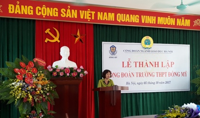 Tại Lễ thành lập, đồng chí Nguyễn Thị Cẩm Khuê - Chủ tịch Công đoàn lâm thời trường THPT Đông Mỹ thay mặt Công đoàn nhà trường cảm ơn sự quan tâm giúp đỡ tạo điều kiện của Công đoàn cấp trên, của Ban giám hiệu và hứa sẽ quyết tâm đoàn kết, chung sức chung lòng xây dựng Công đoàn vững mạnh góp phần thúc đẩy sự nghiệp giáo dục của nhà trường ngày càng phát triển.