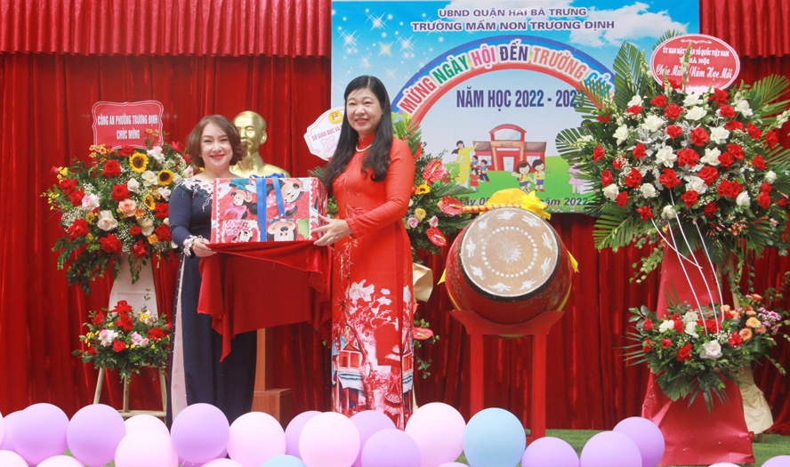 Đánh trống khai giảng năm học mới và phát biểu tại buổi lễ, Chủ tịch Ủy ban Mặt trận Tổ quốc Việt Nam thành phố Nguyễn Lan Hương tin tưởng, với sự quyết tâm và tinh thần đoàn kết của tập thể cán bộ, giáo viên Trường Mầm non Trương Định sẽ ngày càng lớn mạnh, đạt nhiều thành tích hơn trong những năm học qua và giành được sự tin cậy của phụ huynh để mỗi ngày đến trường của các con là một ngày vui.