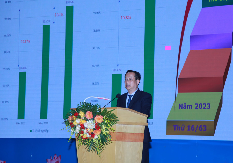 Theo báo cáo của Sở GD&ĐT Hà Nội, kỳ thi tốt nghiệp THPT năm 2024, Hà Nội đạt được nhiều kết quả tốt. Tỷ lệ tốt nghiệp khối THPT đạt 99,85%; tăng 0,1% so với năm 2023 và 0,37% so với năm 2022. Tỷ lệ đỗ tốt nghiệp khối GDTX đạt 99,12%, tăng 0,82% so với năm 2023. So với năm 2023, Hà Nội tăng 5 bậc và so với 2022, Hà Nội tăng 16 bậc.