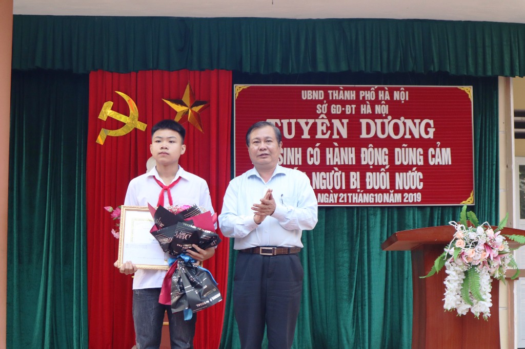 Trao Bằng khen của Chủ tịch UBND thành phố Hà Nội và phần thưởng của Sở GDĐT Hà Nội cho em Phan Trung Hiếu, PGĐ Sở GDĐT Hà Nội Lê Ngọc Quang hoan nghênh hành động dũng cảm và trí thông minh của em Hiếu và bày tỏ mong muốn các em học sinh rèn luyện, xây dựng nhân cách bản thân, biết thương yêu, giúp đỡ nhau và mọi người xung quanh bằng tấm lòng nhân ái, có trách nhiệm.