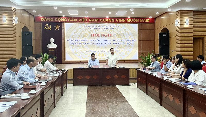 Tại hội nghị, Thứ trưởng Bộ Giáo dục và Đào tạo Nguyễn Hữu Độ ghi nhận những cố gắng và kết quả của thành phố Hà Nội trong việc đầu tư các điều kiện bảo đảm chất lượng giáo dục. Căn cứ Nghị định số 20/2014/NĐ-CP của Thủ tướng Chính phủ về việc phổ cập giáo dục, xóa mù chữ và kết quả kiểm tra thực tế, đoàn kiểm tra đánh giá, thành phố Hà Nội đạt chuẩn phổ cập giáo dục trung học cơ sở mức độ 3.