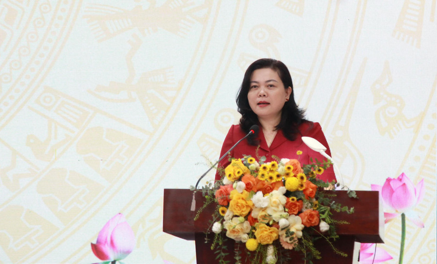 ThS Cao Hồng Huệ, giảng viên Trường Đại học Sư phạm 2 trình bày báo cáo tại lớp tập huấn.