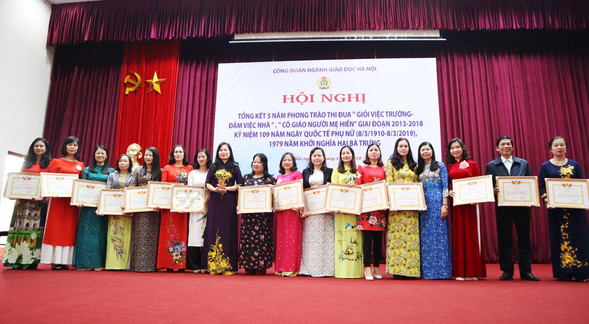 Tại hội nghị, Công đoàn Giáo dục Hà Nội đã trao Giấy khen cho 16 tập thể và 60 nữ nhà giáo có thành tích xuất sắc trong phong trào thi đua “Giỏi việc trường – đảm việc nhà” – “Cô giáo người mẹ hiền” giai đoạn 2013 – 2018.