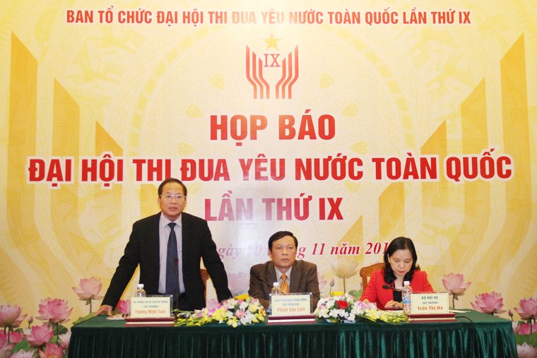 Bà Trần Thị Hà, Thứ trưởng Bộ Nội vụ, Trưởng ban Thi đua – Khen thưởng Trung ương cho biết: Đại hội Thi đua yêu nước toàn quốc lần thứ IX nhằm đánh giá kết quả thực hiện mục tiêu, nhiệm vụ của các phong trào thi đua yêu nước và công tác khen thưởng giai đoạn 2011-2015; biểu dương, tôn vinh các anh hùng, chiến sỹ thi đua, các tập thể, cá nhân điển hình tiên tiến, nhân tố tiêu biểu trong toàn quốc. Đồng thời, phát động phong trào thi đua trên các lĩnh vực của đời sống xã hội, gắn với việc “Học tập và làm theo tấm gương đạo đức Hồ Chí Minh”; tiếp tục đổi mới công tác thi đua, khen thưởng theo Chỉ thị của Bộ Chính trị và Luật Thi đua, khen thưởng.