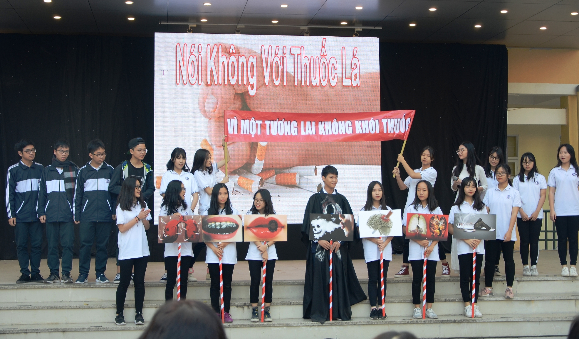 Trước khi diễn ra chuyên đề giáo dục, học sinh các lớp đã tham gia cuộc thi sáng tác tranh cổ động về phòng chống tác hại của thuốc lá. Những bức tranh đẹp nhất được lựa chọn tham gia vòng thi bình tranh tại sân khấu, trước toàn trường trong sáng 4/12. Thông qua các bức tranh, học sinh đã truyền tải những thông điệp ý nghĩa như "Thuốc lá: kẻ giết người thầm lặng", hay câu hỏi dành cho những người hút thuốc "bạn thích quan tài mầu gì để chúng tôi đóng?" … Kỹ năng thuyết trình cũng được tính là một trong những tiêu chí để đánh giá kết quả thi giữa các lớp.