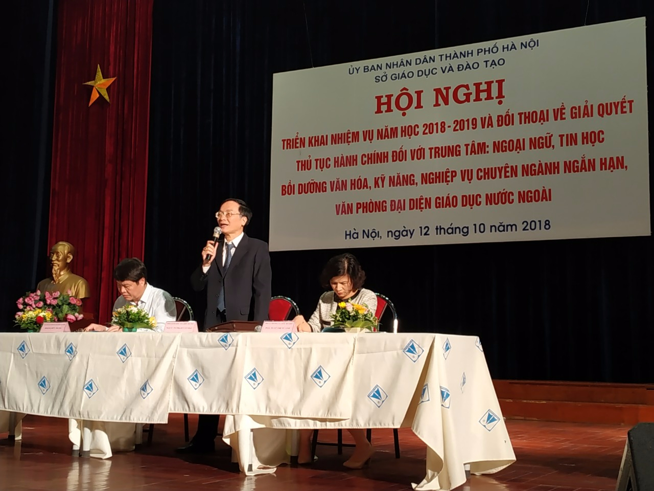 Ngày 12/10/2018, tại Trường THPT chuyên Hà Nội – Amsterdam, Sở GDĐT Hà Nội tổ chức Hội nghị triển khai nhiệm vụ năm học 2018-2019 và đối thoại về thủ tục hành chính (TTHC), giải quyết TTHC đối với hơn 600 Trung tâm: ngoại ngữ, tin học, bồi dưỡng văn hoá, kỹ năng, nghiệp vụ chuyên ngành ngắn hạn, cơ sở đào tạo, bồi dưỡng ngắn hạn có vốn đầu tư nước ngoài, văn phòng đại diện giáo dục nước ngoài trên địa bàn thành phố Hà Nội.