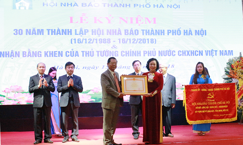 Tại buổi lễ, Hội Nhà báo TP Hà Nội đã vinh dự được đón nhận Bằng khen của Thủ tướng Chính phủ và Thành ủy, HĐND, UBND TP Hà Nội trao tặng bức trướng có tiêu đề: "Đổi mới, dân chủ, đoàn kết, trách nhiệm, xây dựng Thủ đô giàu đẹp, văn minh hiện đại".