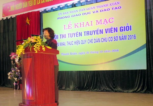 Hướng tới Hội thi cấp quận, ngay từ đầu tháng 10/2016, 100% các trường Mầm non, Tiểu học, THCS công lập trên địa bàn quận đã tổ chức Hội thi cấp trường với sự tham gia của đông đảo của cán bộ, giáo viên, nhân viên và học sinh, đảm bảo tiến độ, thời gian, tiết kiệm và hiệu quả. Với chủ đề “Chung tay xây dựng nhà trường dân chủ, an toàn, thân thiện”, Hội thi được tổ chức nhằm phát huy quyền làm chủ và huy động tiềm năng trí tuệ của cán bộ, giáo viên, nhân viên góp phần xây dựng nền nếp, trật tự, kỉ cương trong mọi hoạt động của nhà trường, ngăn chặn các hiện tượng tiêu cực và tệ nạn xã hội, thực hiện phát triển giáo dục phù hợp với đường lối, chủ trương của Đảng và pháp luật Nhà nước; xây dựng đội ngũ cán bộ, giáo viên, nhân viên có đủ phẩm chất chính trị, đạo đức, lối sống, năng lực và trình độ chuyên môn, nghiệp vụ, làm việc với tinh thần trách nhiệm cao, chất lượng, hiệu quả; góp phần vào thành công của Đề án Phát triển Giáo dục và Đào tạo quận Thanh Xuân giai đoạn 2016-2020.