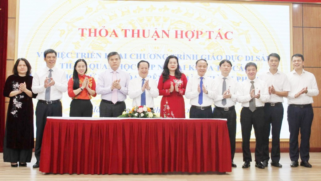 Tại buổi lễ, đại diện Sở GD&ĐT Hà Nội, Sở Văn hóa và Thể thao Hà Nội, Trung tâm bảo tồn di sản Thăng Long - Hà Nội; UBND thị xã Sơn Tây; UBND huyện Gia Lâm và UBND huyện Sóc Sơn đã cùng thỏa thuận về nguyên tắc thực hiện, nội dung hợp tác về công tác phối hợp giáo dục di sản cho học sinh trên địa bản thành phố.