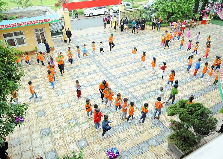 Về dự buổi kiến tập có đồng chí Hoàng Thanh Hương Trưởng phòng GDMN, các đồng chí lãnh đạo, chuyên viên phòng GDMN và các đồng chí lãnh đạo phụ trách cấp học mầm non của các quận, huyện, thị xã, đại diện ban giám hiệu, giáo viên cốt cán của các trường mầm non điểm trên địa bàn thành phố Hà Nội và các trường mầm non trực thuộc Sở, trường mầm non thực hành thuộc trường Cao đẳng sư phạm Trung ương và trường trung học sư phạm Nhà trẻ - Mẫu giáo Hà Nội. Các đại biểu tham quan cơ sở vật chất và dự các hoạt động của nhà trường thể hiện rõ quan điểm lấy trẻ làm trung tâm thông qua việc xây dựng môi trường và tổ chức hoạt động góc tại 4 độ tuổi, tiếp cận phương pháp giảng dạy tiên tiến qua việc dự tổ chức hoạt động ứng dụng phương pháp giảng dạy tiên tiến của trường liên hiệp quốc Uniss tại 3 lớp mẫu giáo, giới thiệu cách khai thác sử dụng khu vực chung của nhà trường để tổ chức hoạt động tại các phòng chức năng như: phòng xem phim, phòng thư viện, phòng ứng dụng phương pháp Montessori, phòng bé tập làm nội trợ, phòng hoạt động Tạo hình và các khu thể chất, dân gian, khám phá khoa học, vườn cổ tích, vườn trường…