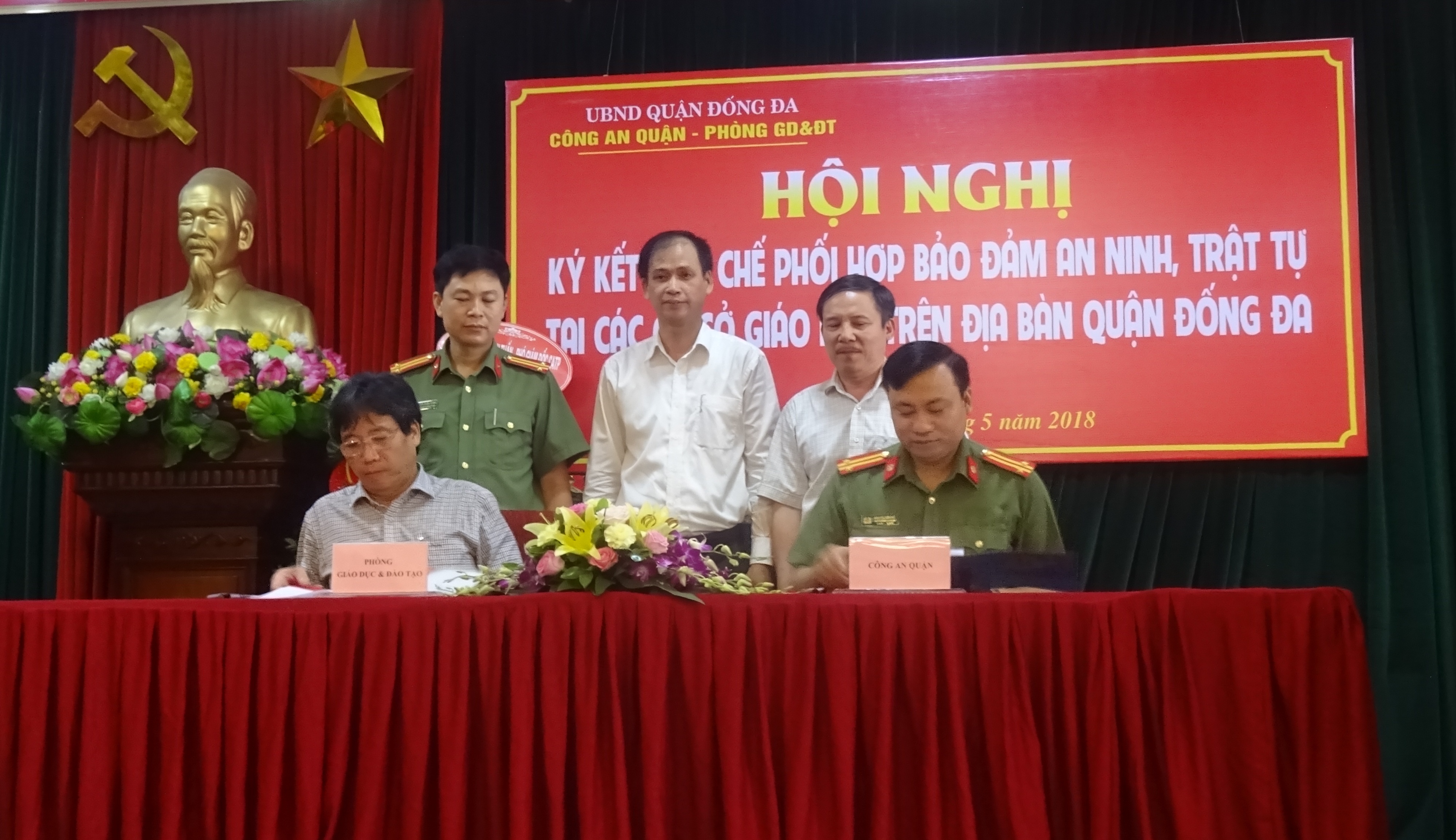 Để nâng cao chất lượng các hoạt động phối hợp giữa ngành GD với lực lượng công an các cấp, Công an quận Đống Đa và phòng GD&ĐT quận tổ chức hội nghị ký kết quy chế phối hợp nhằm tăng cường hiệu quả công tác quản lý nhà nước, đảm bảo an ninh trật tự trong lĩnh vực giáo dục và đào tạo, đồng thời chủ động phòng ngừa, phát hiện đấu tranh với các loại tội phạm, các hành vi vi phạm pháp luật nhằm bảo vệ nội bộ và hoạt động của các cơ sở giáo dục trên địa bàn quận.