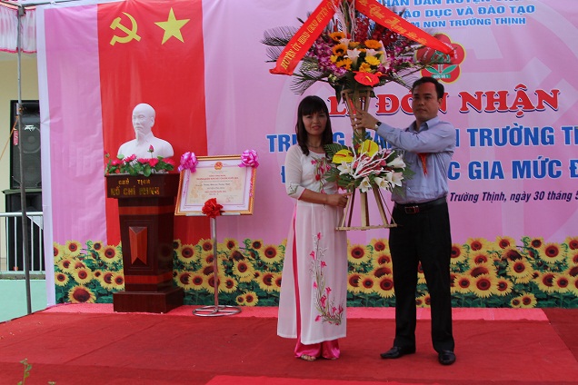 Trường mầm non Trường Thịnh thành lập từ năm 1989 theo quyết định số 1718-QĐ/UB ngày 25 tháng 12 năm 1997 quyết định của UBND Tỉnh Hà Tây, trải qua 19 năm phấn đấu và trưởng thành với tinh thần đoàn kết, quyết tâm của các thế hệ cô và trò nhà trường, được sự quan tâm chỉ đạo sát sao của ngành giáo dục & đào tạo các cấp, của cấp uỷ, chính quyền địa phương, sự phối hợp giúp đỡ của các ban, ngành, đoàn thể và nhân dân, sự đồng thuận của phụ huynh học sinh... Đến nay nhà trường đã gom được 4 điểm lẻ còn 2 điểm trường với quy mô 15 phòng học và đủ các phòng chức năng theo qui định với tổng diện tích 4982 m2 đảm bảo diện tích bình quân trên trẻ là 13 m2 đón nhận 485 học sinh với tổng số 60 CBGVNV. 100% giáo viên trình độ chuyên môn đạt chuẩn, 60% giáo viên trình độ chuyên môn trên chuẩn, 45% nhân viên đạt trình độ trên chuẩn. Năm học 2015- 2016 tỷ lệ trẻ 5 tuổi ra lớp đạt 100%, 3-4 tuổi đạt 90-95%, nhà trẻ đạt 40 - 45%. 100% các cháu đến trường được tổ chức ăn bán trú và học 2 buổi trên ngày. 100% các lớp thực hiện chương trình giáo dục mầm non mới, đảm bảo theo nguyên tắc “Lấy trẻ làm trung tâm - toàn diện - tích hợp - trải nghiệm”. Ghi nhận sự phấn đấu và hiệu quả giáo dục cao của nhà trường, ngày 31/12/2015, UBND Thành phố Hà Nội đã ra quyết định số 7435 công nhận trường MN Trường Thịnh đạt chuẩn Quốc gia. Đây là niềm vinh dự tự hào, là sự động viên khích lệ to lớn đối với toàn thể cán bộ, giáo viên và học sinh nhà trường mở ra một hướng đi mới để trường MN Trường Thịnh vươn lên phấn đấu trở thành một ngôi trường vững mạnh về mọi mặt. Đồng chí Nguyễn Hồng Dân - Huyện ủy viên Phó chủ tịch UBND huyện Ứng Hòa, chúc mừng và ghi nhận những công lao đóng góp của Trường Mầm non Trường Thịnh đối với ngành giáo dục huyện nhà và giao nhiệm vụ trong thời gian tới cán bộ giáo viên nhà trường phải luôn đoàn kết, năng động, sáng tạo tập trung trí tuệ cao hơn nữa, không ngừng học tập nâng cao trình độ chuyên môn nghiệp vụ, thực hiện tốt mục tiêu đổi mới phương pháp dạy học, đem hết tâm huyết của mình để cống hiến cho sự nghiệp trồng người. Trước yêu cầu, đòi hỏi ngày càng cao của xã hội, mong nhà trường hãy tiếp tục nêu cao tinh thần trách nhiệm, tăng cường tinh thần đoàn kết nhất trí, khắc phục những khó khăn, nỗ lực thi đua hoàn thành xuất sắc nhiệm vụ, phấn đấu giữ vững và nâng cao chất lượng trường học đạt chuẩn Quốc gia mức độ 1.