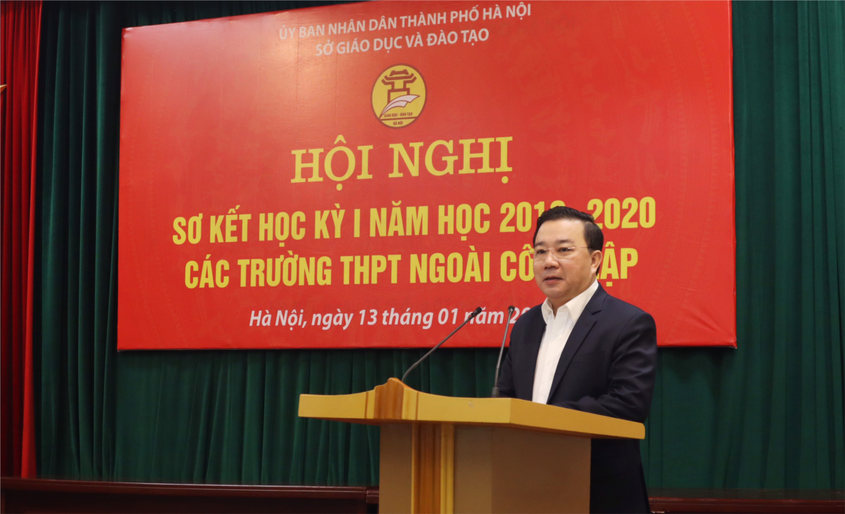 Giám đốc Sở GDĐT Hà Nội Chử Xuân Dũng phát biểu tại hội nghị sơ kết học kỳ 1 các trường THPT ngoài công lập