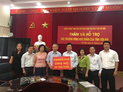 Để kịp thời động viên, chia sẻ với ngành Giáo dục các tỉnh khó khăn, ngày 7/8/2017, đồng chí Nguyễn Hữu Độ, Giám đốc Sở GD&ĐT, đồng chí Trần Thị Thu Hà, Chủ tịch Công đoàn ngành Giáo dục Hà Nội cùng đại diện lãnh đạo các phòng, ban Sở GD&ĐT Hà Nội lên thăm hỏi, tặng 300 triệu đồng hỗ trợ ngành GD&ĐT tỉnh Yên Bái khắc phục hậu quả thiên tai lũ lụt.