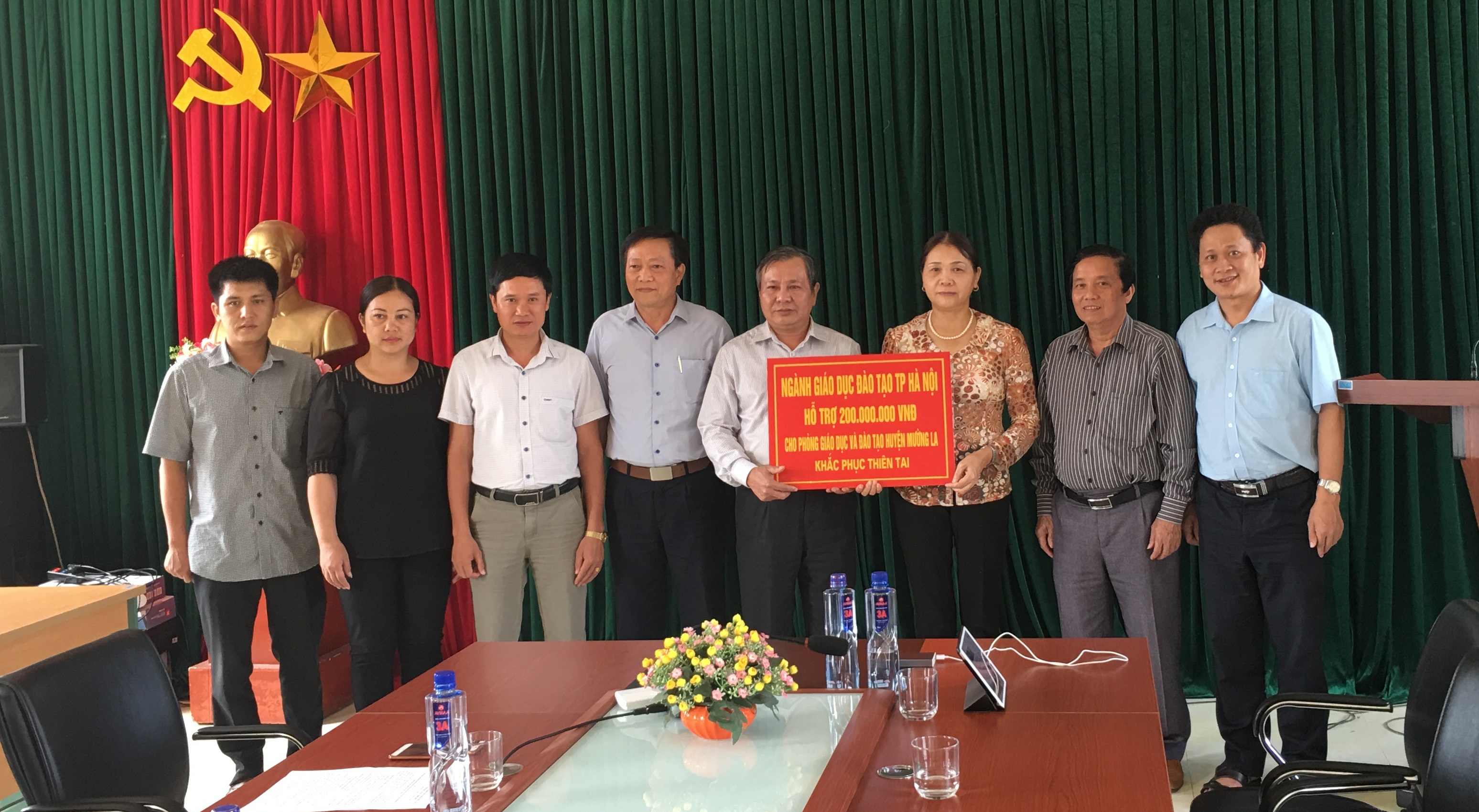 Để kịp thời động viên ngành GD huyện Mường La, ngành GD&ĐT Hà Nội đã lên thăm hỏi và hỗ trợ ngành GD&ĐT huyện Mường La số tiền 200 triệu đồng. Đoàn của ngành GD&ĐT Hà Nội đã trực tiếp đến thăm và động viên gia đình một số cán bộ giáo viên bị ảnh hưởng nặng nề trong đó có gia đình bà Lò Thị Yến – Phó Trưởng phòng GD&ĐT huyện, ông Vũ Văn Khang – Giám đốc Trung tâm Giáo dục Thường xuyên đã bị lũ cuốn trôi mất nhà.