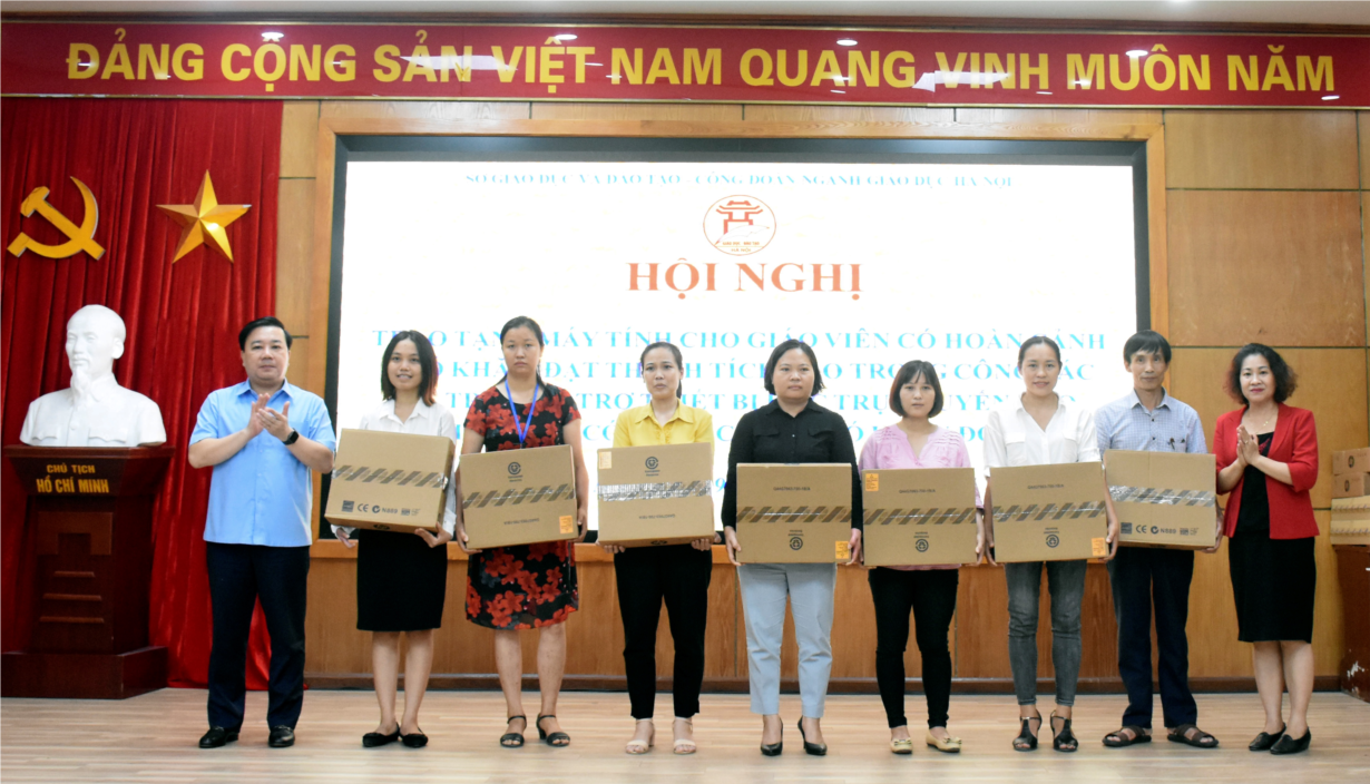 Tại hội nghị, ngành GDĐT Hà Nội đã trao 36 máy tính tặng 17 giáo viên thuộc 15 huyện có hoàn cảnh khó khăn vươn lên đạt thành tích cao trong giảng dạy và 19 học sinh khối 12 của 10 trường THPT có hoàn cảnh khó khăn chưa có thiết bị học tập.