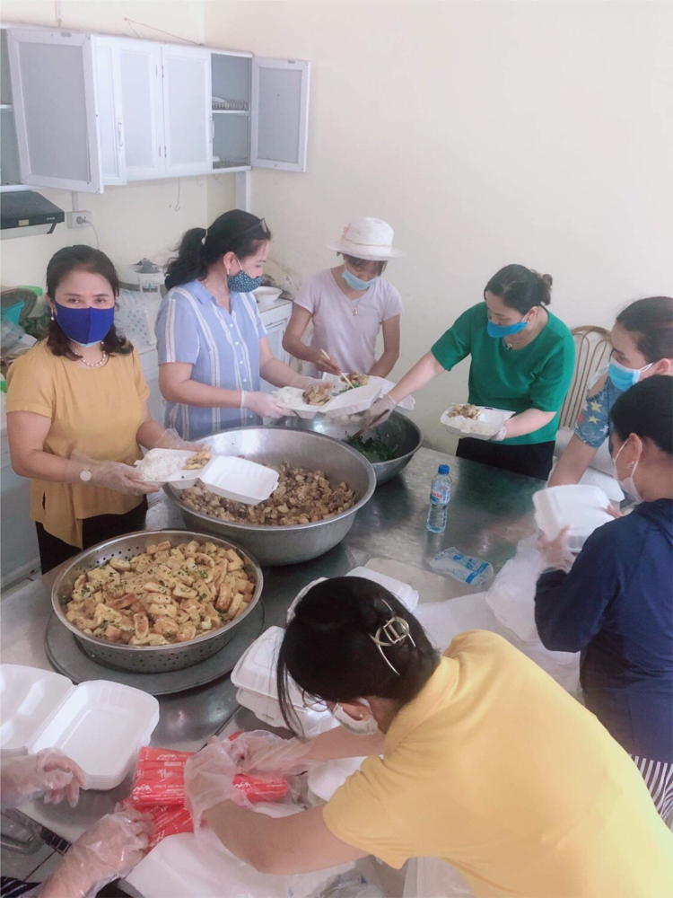 Các cô giáo của các trường học trên địa bàn, ngoài giờ dạy học trực tuyến, trực phòng chống dịch tại trường đã đến UBND xã Kim Sơn cùng với các Hội, đoàn thể, lực lượng xung kích của Huyện, xã tích cực phục vụ các điểm chốt và nhân dân trong khu vực cách ly. . Với tinh thần “ Chống dịch như chống giặc”, các nhà giáo cùng chính quyền và nhân dân địa phương chủ động thực hiện quyết liệt công tác phòng, chống dịch. Mỗi ngày, đội tình nguyện nấu 200 xuất cơm/ ngày phục vụ các điểm chốt . Mặc dù giữa trưa hè nắng gắt, các cô hối hả nấu cơm, chia xuất để gửi đến các điểm chốt và tiếp nhận các nhu yếu phẩm khắp nơi gửi về. Cô Vũ Thị Lan Anh, hiệu trưởng trường THCS Cao Bá Quát chia sẻ: “ Được đến đây mới thấy hết sự vất vả của lực lượng phòng chống dịch, thấy được sự quan tâm của các cấp chính quyền và nhân dân”. Cô Nguyễn Thị Cúc, giáo viên trường mầm non Kim Sơn lại có suy nghĩ bình dị, khiêm tốn: “ Khi ở xã có dịch xảy ra, mỗi người một việc cùng chung tay để cùng vượt qua. Mọi người ở các chốt mà thời tiết như vậy thật vất vả…”. Quên đi nắng gắt giữa trưa hè, tất cả mọi người nhiệt tình, trách nhiệm với niềm tin bệnh dịch sẽ bị đẩy lùi, cuộc sống bình thường sẽ trở lại, cô và trò lại được đến trường.