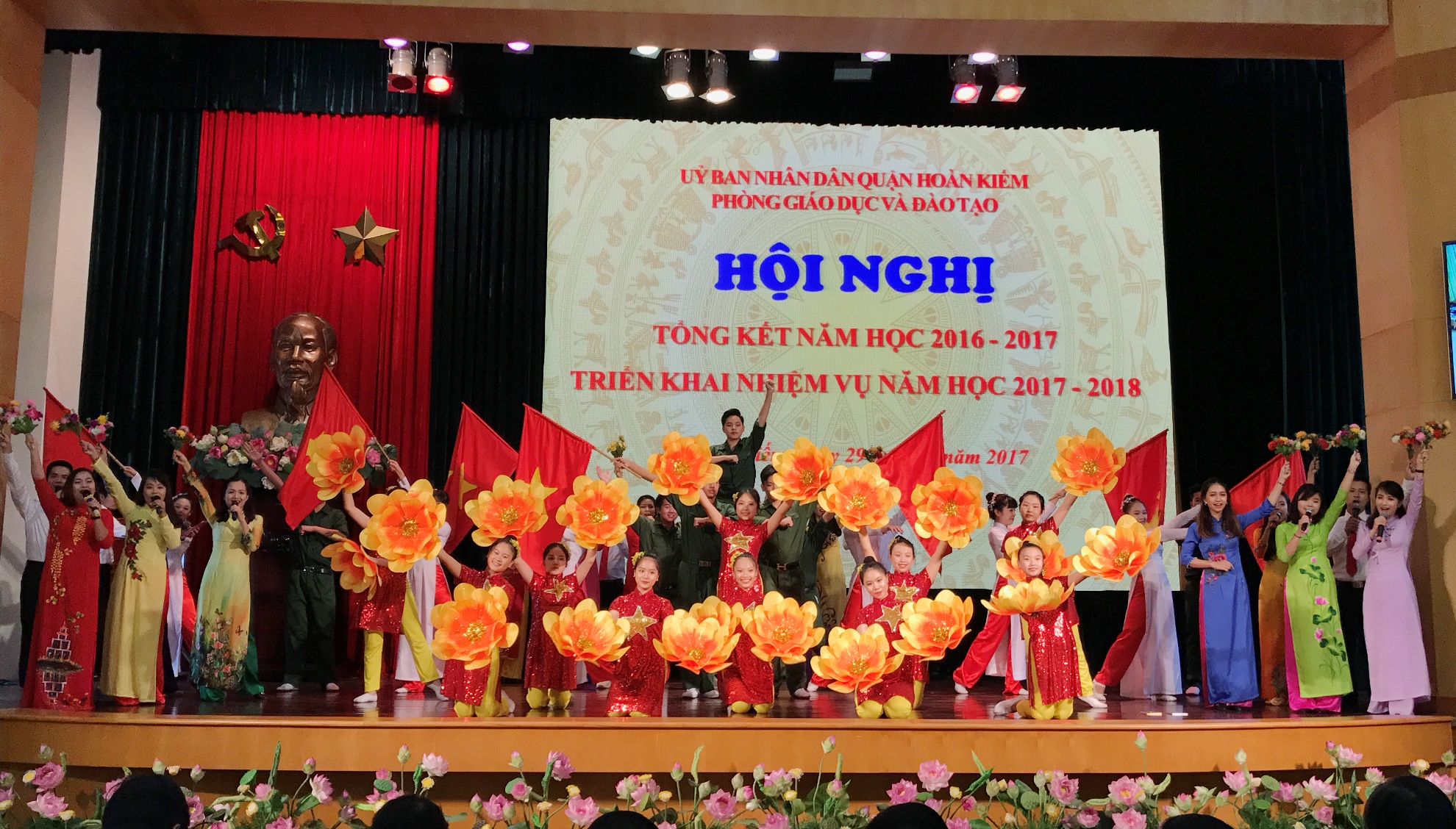 Hội nghị tổng kết năm học 2016 – 2017 và triển khai nhiệm vụ năm học 2017 – 2018 của ngành GD&ĐT quận có sự tham dự của PGĐ Sở GD&ĐT Hà Nội Lê Ngọc Quang; Bí thư Quận ủy Ba Đình Hoàng Minh Dũng Tiến; đại diện lãnh đạo quận Ba Đình cùng cán bộ quản lý các trường trong quận.