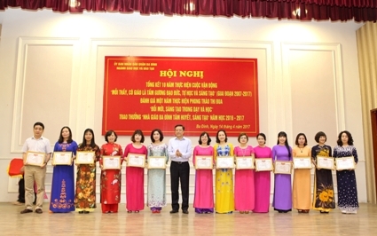 Hội nghị đã tuyên dương khen thưởng 14 tập thể và 27 cá nhân đạt thành tích xuất sắc nhất trong cuộc vận động “Mỗi thầy, cô giáo là tấm gương đạo đức, tự học và sáng tạo” (giai đoạn 2007-2017); 47 cá nhân đạt thành tích xuất sắc trong phong trào thi đua “Đổi mới sáng tạo trong dạy học” được trao thưởng “Nhà giáo Ba Đình tâm huyết, sáng tạo” năm học 2016-2017.