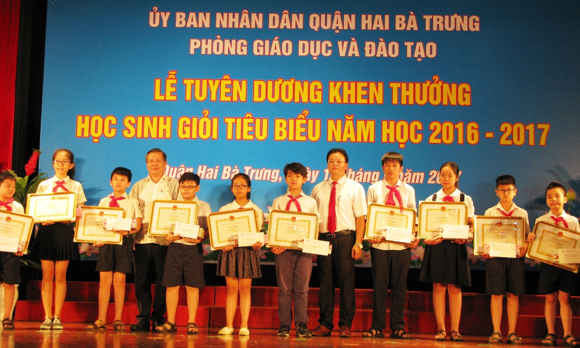 Nhân dịp này, UBND quận Hai Bà Trưng đã khen thưởng 14 tập thể có thành tích xuất sắc trong bồi dưỡng học sinh giỏi và có nhiều học sinh đoạt giải cùng 235 học sinh giỏi tiêu biểu năm học 2016-2017.