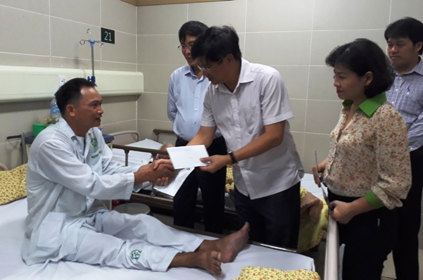 Tại buổi trao quà, đồng chí Vũ Minh Đức - Chủ tịch CĐGD Việt Nam và đồng chí Phạm Xuân Tiến - Phó Giám đốc Sở GD&ĐT Hà Nội thay mặt đoàn chia sẻ với những khó khăn của gia đình thầy giáo Hải, đồng thời động viên thầy giáo yên tâm chữa trị, nhanh chóng phục hồi sức khỏe.