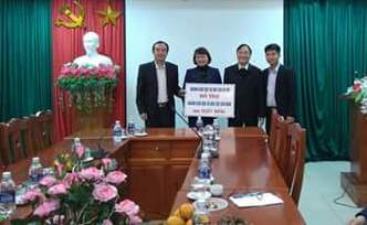 Đại diện lãnh đạo ngành GD&ĐT Hà Nội trao hỗ trợ ngành GD&ĐT tỉnh Cao Bằng
