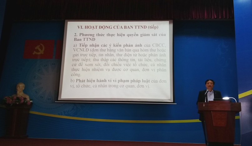 Đồng chí Trần Văn Thảnh - Phó Chủ tịch, Chủ nhiệm UBKT Công đoàn ngành Giáo dục Hà Nội đã truyền đạt và cung cấp những vấn đề cơ bản về tổ chức và hoạt động của Ban thanh tra nhân dân; những nhiệm vụ, quyền hạn; cách thức xây dựng chương trình kế hoạch; nội dung hoạt động giám sát và hoạt động xác minh; nguyên tắc và lề lối làm việc của ban thanh tra nhân dân tới Hội nghị. Bên cạnh những nội dung cơ bản cần bồi dưỡng, Hội nghị đã tiến hành thảo luận, trao đổi và giải đáp một số thắc mắc về những vấn đề còn vướng mắc trong quá trình thực hiện nhiệm vụ tại các đơn vị cơ sở, qua đó đã giúp các đồng chí cán bộ thanh tra nhân dân nắm rõ hơn chức năng, nhiệm vụ của mình để hoàn thành tốt nhiệm vụ được giao, góp phần cùng với Ban chấp hành Công đoàn cơ sở và lãnh đạo các đơn vị hoàn thành tốt nhiệm vụ năm học 2017-2018.
