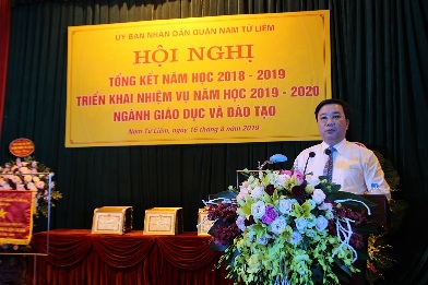 Định hướng nhiệm vụ năm học mới 2019-2020, đồng chí Nguyễn Văn Hải -Bí thư Quận ủy yêu cầu cán bộ quản lý ngành giáo dục, hiệu trưởng các nhà trường tiếp tục đổi mới phương pháp quản lý, mạnh dạn đề xuất các điểm mới, đột phá, tạo thế mạnh của trường. Tăng cường trao đổi kinh nghiệm về quản lý giáo dục với các trường tốp đầu của thành phố Hà Nội, của các tỉnh, Thành phố trên cả nước và các nền giáo dục tiên tiến trên thế giới. Đề nghị hiệu trưởng các trường công lập mạnh dạn đề xuất sớm thực hiện lộ trình tự chủ tài chính theo tinh thần Nghị quyết Trung ương, nâng cao chất lượng giáo dục đồng thời giảm gánh nặng chi ngân sách nhà nước, phát huy tính năng động, sáng tạo của lãnh đạo nhà trường.