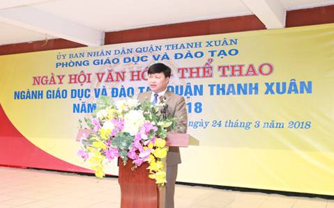 Thực hiện Kế hoạch liên tịch số 4219 ngày 29/11/2017 của Sở GD&ĐT và Công đoàn ngành Giáo dục Hà Nội; sáng ngày 24/3/2018, ngành GD&ĐT quận Thanh Xuân tổ chức “Ngày hội Văn hóa - Thể thao” cán bộ, giáo viên, nhân viên năm học 2017-2018. Đến dự Lễ khai mạc có đồng chí Trần Thị Thu Hà - Ủy viên Ban Thường vụ công đoàn Giáo dục Việt Nam, Ủy viên Ban Thường vụ Liên đoàn Lao động Thành phố, Chủ tịch công đoàn ngành Giáo dục Hà Nội; đồng chí Nguyễn Văn Bình - TVQU, Phó Chủ tịch Thường trực HĐND quận; đồng chí Lê Mai Trang - TVQU, Phó Chủ tịch UBND quận; Lãnh đạo các phòng chuyên môn của Sở GD&ĐT; Lãnh đạo, chuyên viên phòng GD&ĐT quận; Ban giám hiệu. Chủ tịch công đoàn, giáo viên, nhân viên các trường Mầm non, Tiểu học và THCS trong quận.