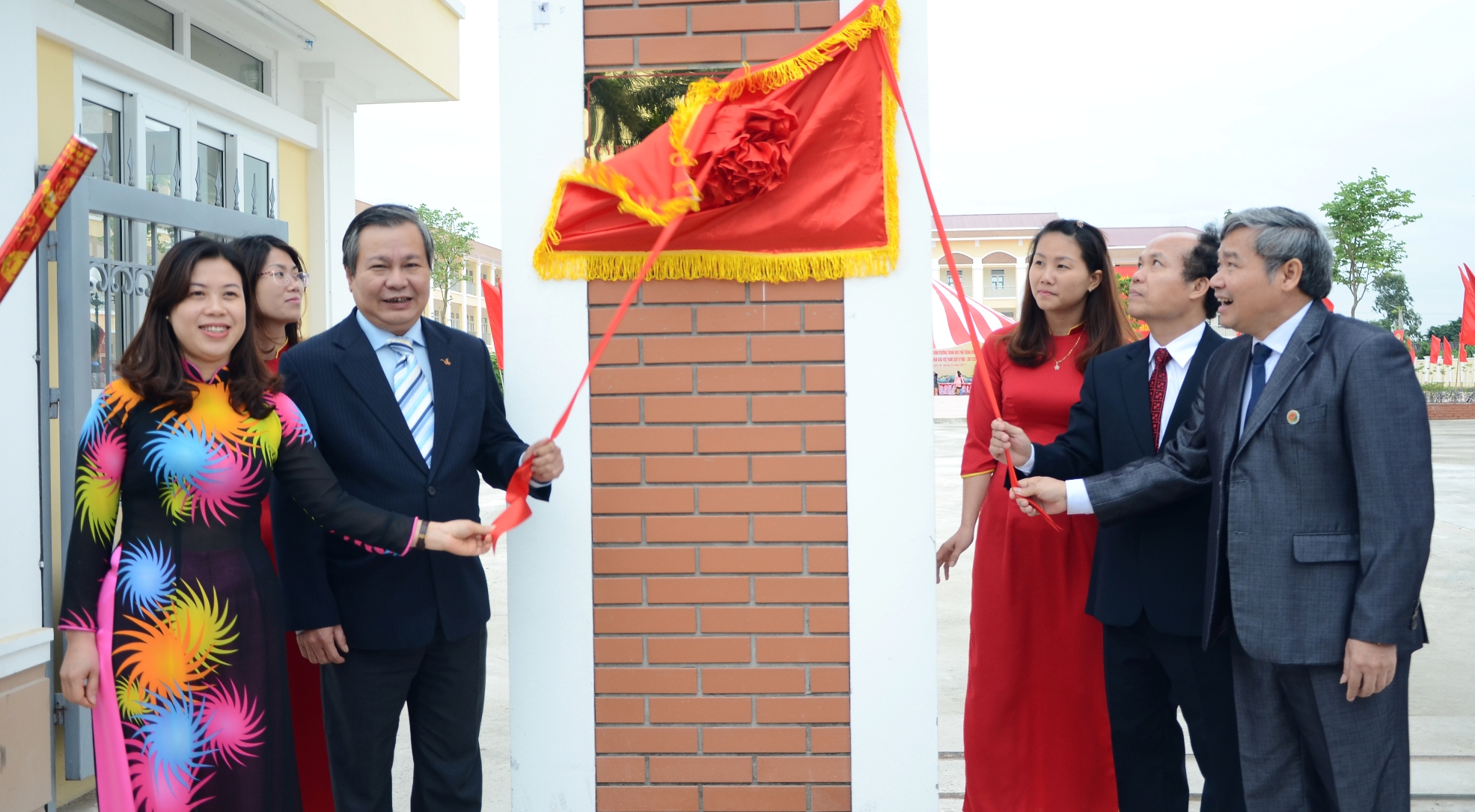 Lãnh đạo Sở GD&ĐT Hà Nội cùng lãnh đạo huyện Thanh Trì gắn biển công trình trường THPT Đông Mỹ