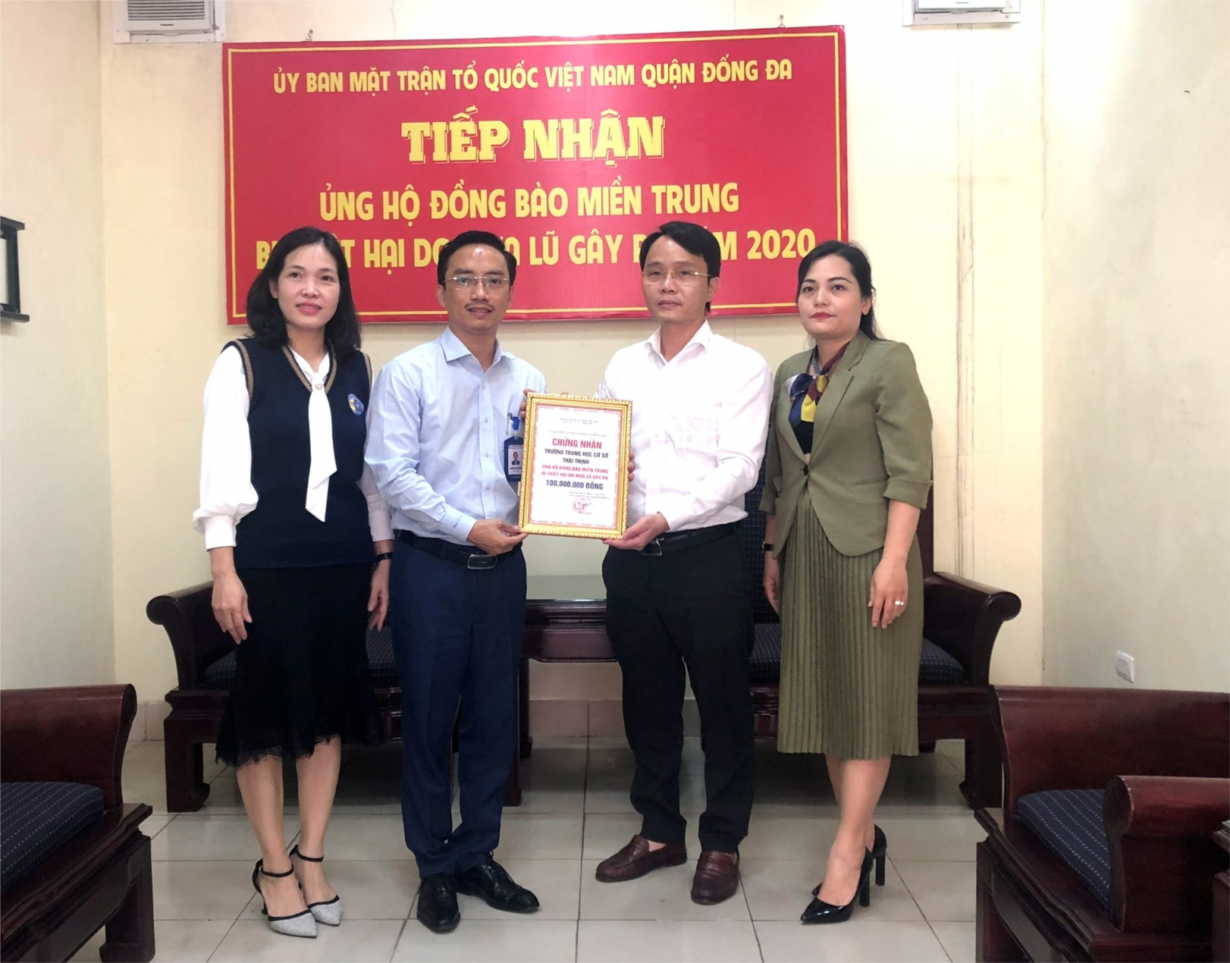 Chỉ trong một ngày 20/10/2020, chương trình quyên góp ủng hộ đồng bào miền Trung của trường THCS Thái Thịnh, quận Đống Đa, Hà Nội đã nhận được hơn 100 triệu đồng. Ngày 21/10, nhà trường đã trao số tiền ủng hộ đợt 1 tới Ủy ban mặt trận tổ quốc Việt Nam quận Đống Đa số tiền 100 triệu đồng để chuyển tới đồng bào các tỉnh miền Trung bị thiên tai lũ lụt. Số tiền còn lại sẽ được chuyển cho các đợt ủng hộ tiếp theo.