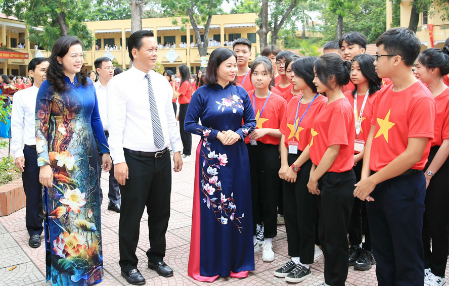 Phó Bí thư Thường trực Thành ủy Hà Nội Nguyễn Thị Tuyến thăm, động viên các học sinh Trường Trung học phổ thông Đan Phượng.