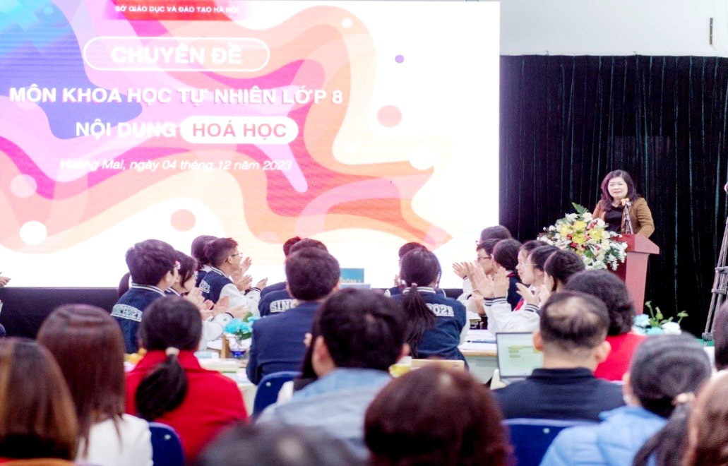 TS Đặng Trần Xuân đánh giá cao việc thiết kế bài giảng và phương pháp dạy học trong tiết dạy chuyên đề KHTN của phòng Giáo dục và Đào tạo quận Hoàng Mai. Từ chuyên đề này, PGS. TS Đặng Thị Oanh - đồng Chủ biên sách giáo khoa môn Khoa học tự nhiên - bộ sách Cánh Diều cũng có thêm những chia sẻ về phương pháp giảng dạy nội dung Hóa học.